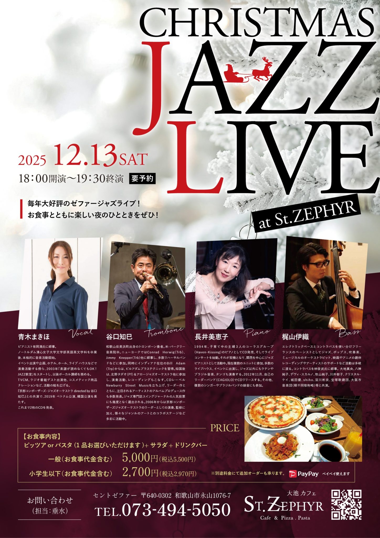 毎年ご好評を頂いております『クリスマスジャズライブ』、今年も開催致します。